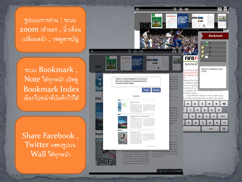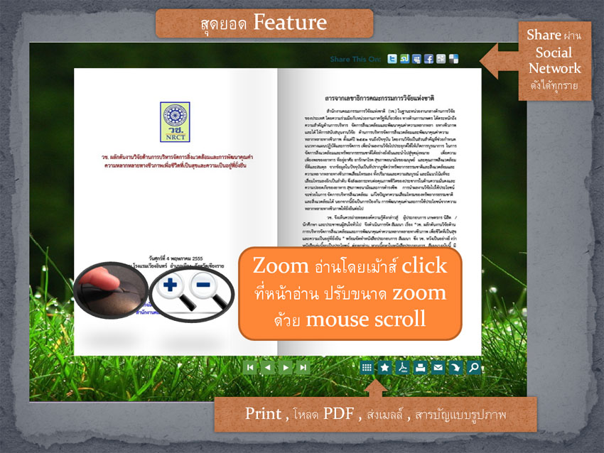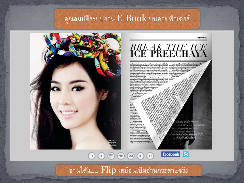 - เปิดอ่านได้แบบ Flip พลิกหน้าอ่านเสมือนอ่านหนังสือจริง