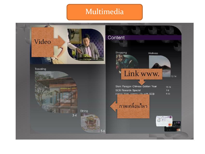 - ebook ที่สามารถใส่ Multimedia เสียง วิดีโอ ภาพเคลื่อนไหว Animation และ link สารสนเทศได้