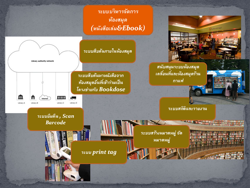 - ระบบยืม-คืนหนังสืออัตโนมัต ระบบจองหนังสือล่วงหน้า ระบบสมาชิกพร้อมรูปภาพ
